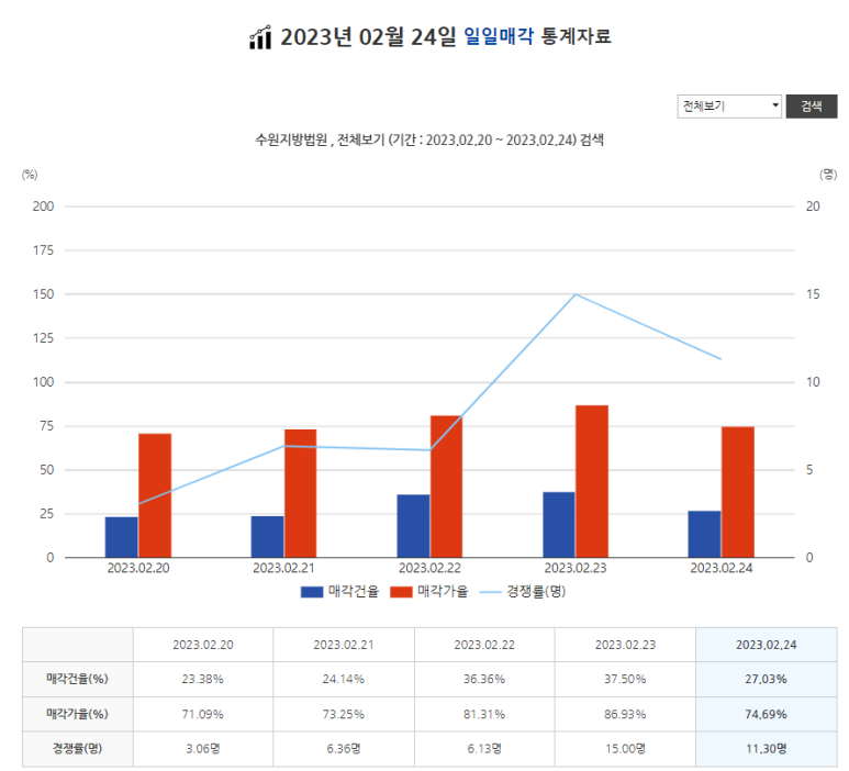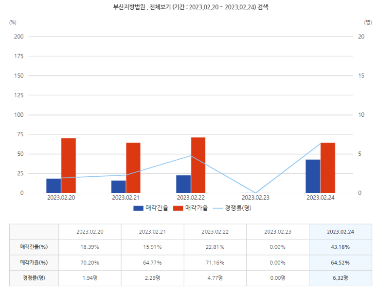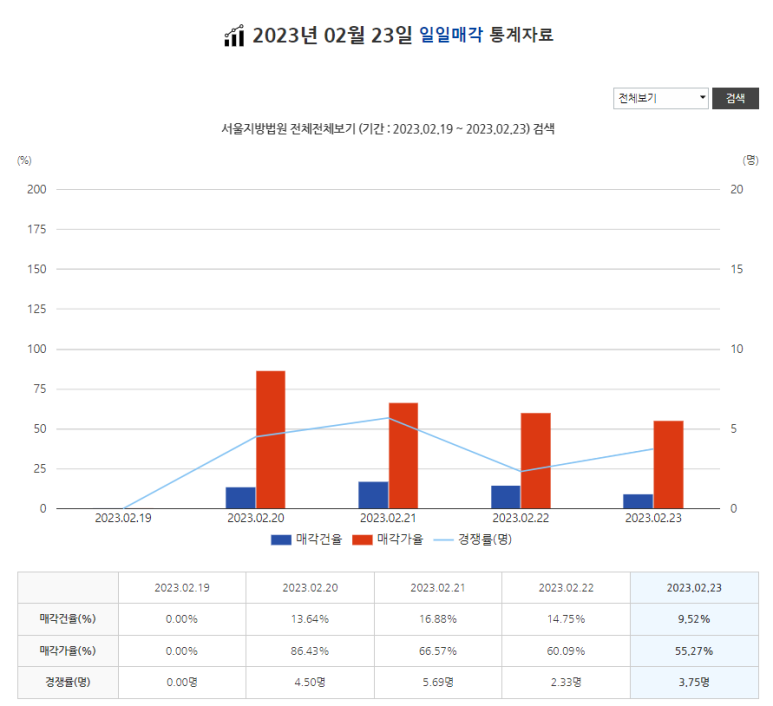 서울법원부동산 매각가격은 2월 23일 목요일부터 적용됩니다. 55.27%로 한 주를 마감했습니다.