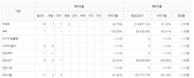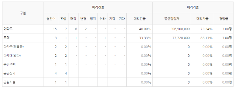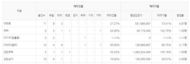 매일, 매주 경매 낙찰률을 확인하고 모니터링하려고 노력합니다.