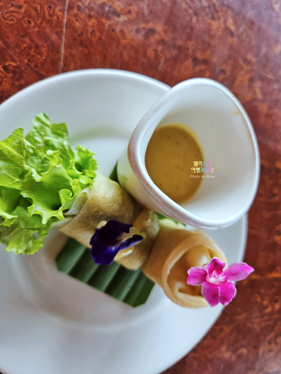 홀로 잠시 동안 메뉴 공부하다 하나 마지막에 직원 맛있는 해준 신선한 카사바 룸피아(240페소)그리고 허니 글레이즈드 치킨(380페소)두번째 주문.