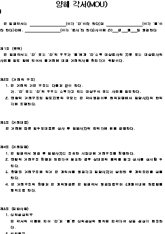 (양해각서) MOU(양해각서)는 법적 효력이 없습니다.내용에 따른 법적인 책임을 져야 합니다.