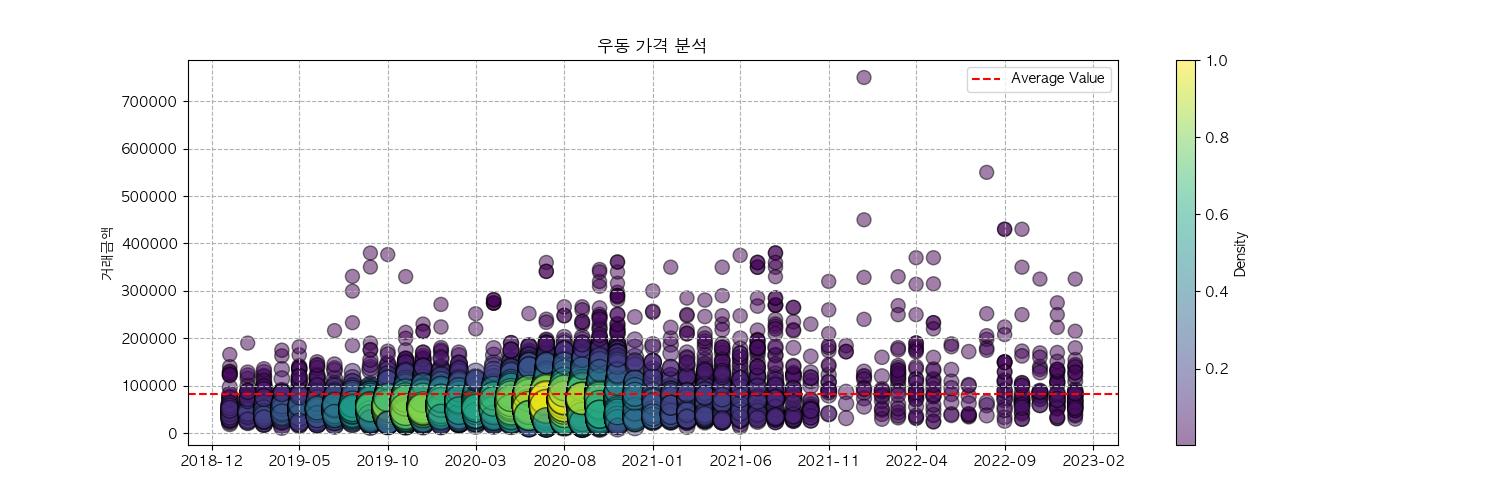 원이 위로 향하는 그래프는 해당 지역의 주택 가격이 상승하고 있음을 나타냅니다. 반면에 하락한다면 그 아파트의 가격이 하락하고 있다고 의심할 수 있습니다.
