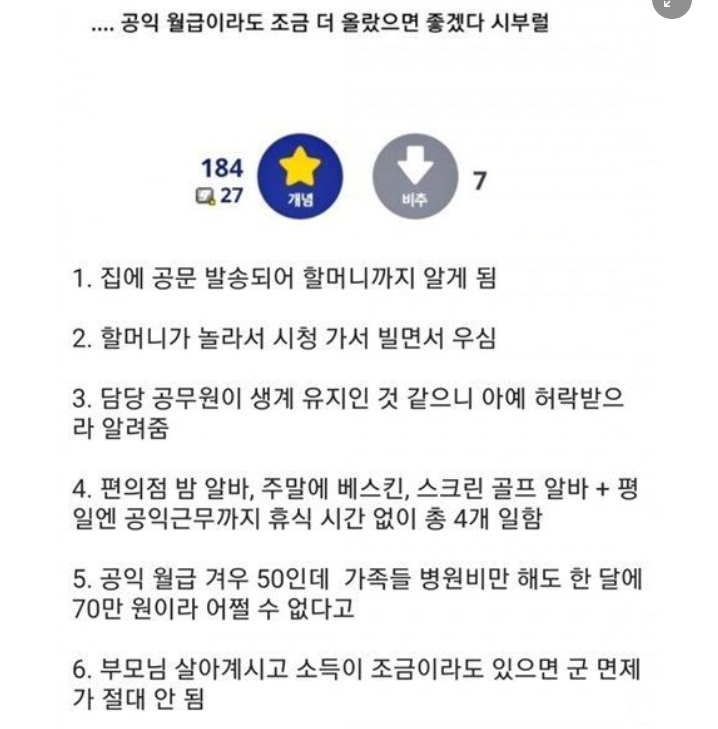 그리고 공익 하에 굉장히 힘든 사람들이 많다는 사실