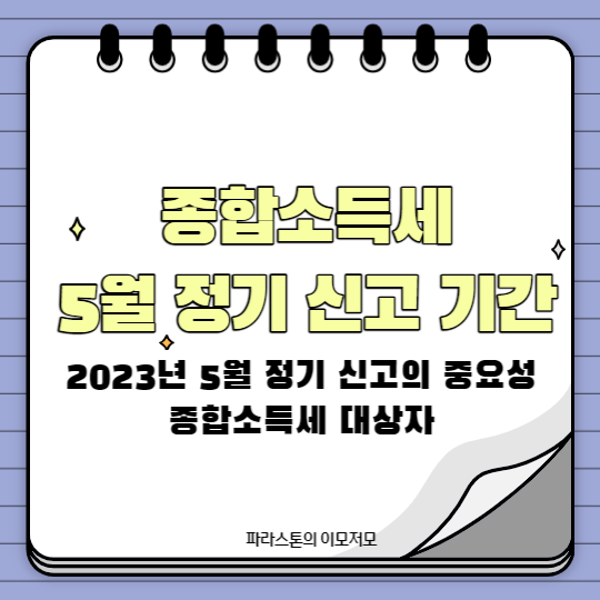 올해 5월 총소득세는 전년 대비 1년 5월 말까지 소득세(년 5월 소득세)이 조성될 수 있다.종합소득세 부과기간 동안 연말 정착을 하지 않았기 때문에 세금폭탄의 경우 5월 중순에 대한 포괄적인 소득세폭세를 보였다.이 텍스트는 전년 동기 가입자가 전년 동기 대비했던 경우 지난해 종료 설정을 종료하지 못했습니다.