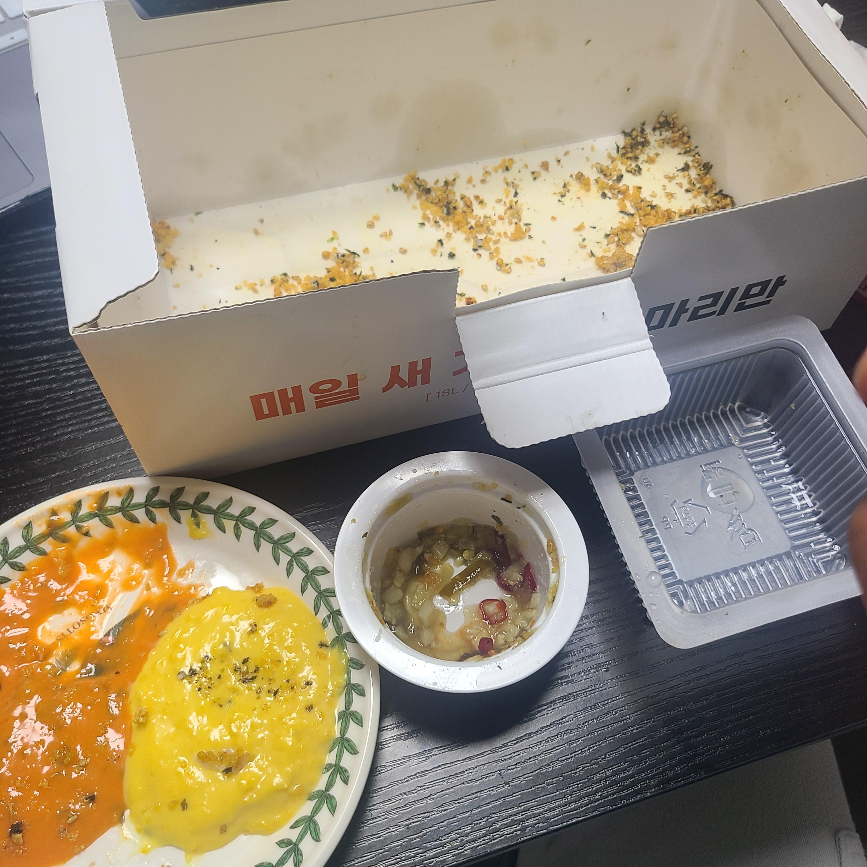하지만 치킨이 퍽퍽하지 않고 부드러운 닭가슴살 같은 느낌이라 더 맛있었던 것 같아요.