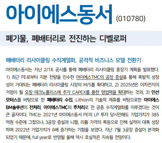 여기서 고려해야 할 사항 폐차 및 폐배터리 사업 성장성 우수설정하는 것이다.