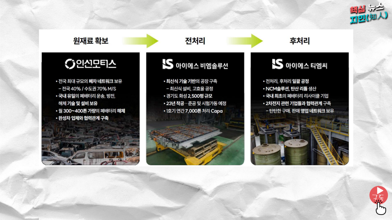 그리고 ISBM 솔루션스크랩 후 전처리 작업을 수행합니다.. 그런데 IS BM Solution이 이런 일을 하려면 어떤 능력이 필요할까요? ISBM Solution은 미국 1위 5 배터리 재활용 회사 리튬(사자)지분 투자를 했다.